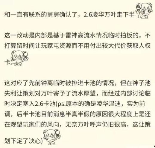 总的来说,原神2.6版本的池子最新爆料让人兴奋不已。无论是神秘角色、新武器,还是新元素和新活动,都让玩家们对这次更新充满了期待。让我们一起期待原神2.6版本的到来,开启全新的冒险之旅吧!